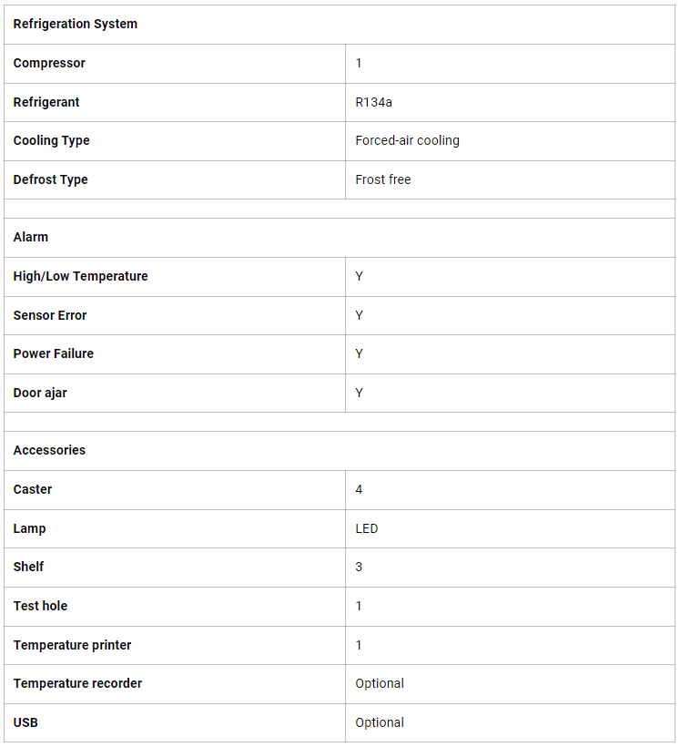 Màn hình hiển thị nhiệt độ kỹ thuật số cho các phần trên và dưới trong buồng với độ phân giải 0,1ºC.