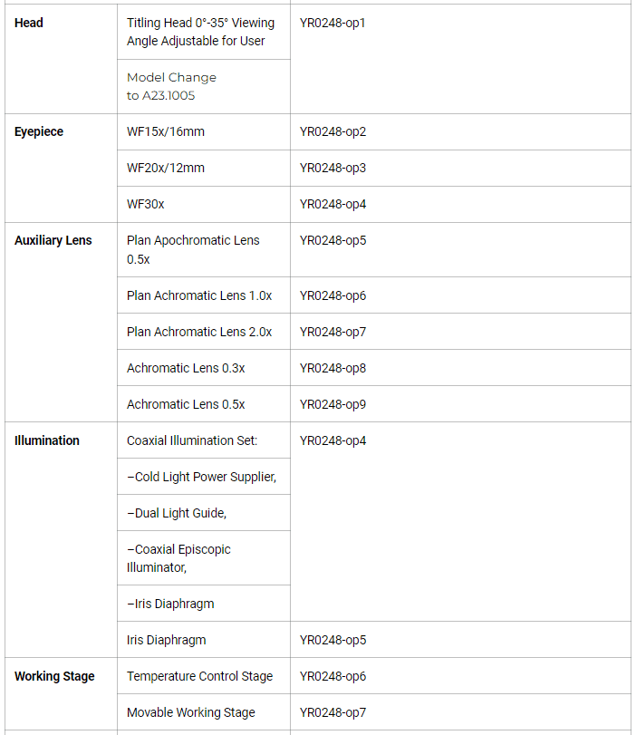 Phụ kiện đầy đủ bao gồm Phân cực, Trường tối, Phụ kiện huỳnh quang